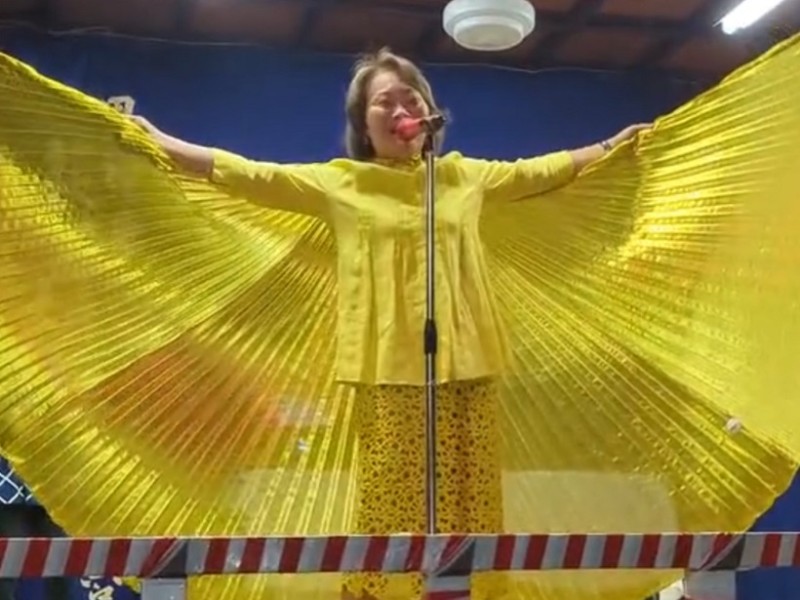 西落合御霊神社例大祭のカラオケ演芸大会に出演、ジュディ・オングさんの名曲『魅せられて』を歌いました。